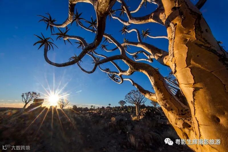 早上前往纳米比亚南部--基特曼斯胡普,乘车前往纳米比亚南部的箭袋树庄园。下午到达之后傍晚前往箭袋树林拍摄日落,晚餐之后拍摄以箭袋树为背景的纳米银河星空,在这里可以到观赏被评为世界最美星空之一的纳米比亚星空。