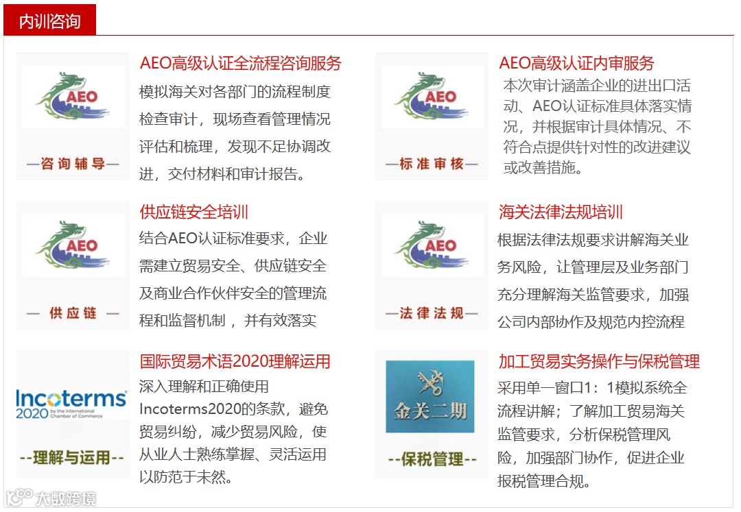 公开课 内训咨询 AEO内审 工具用书 关务系统