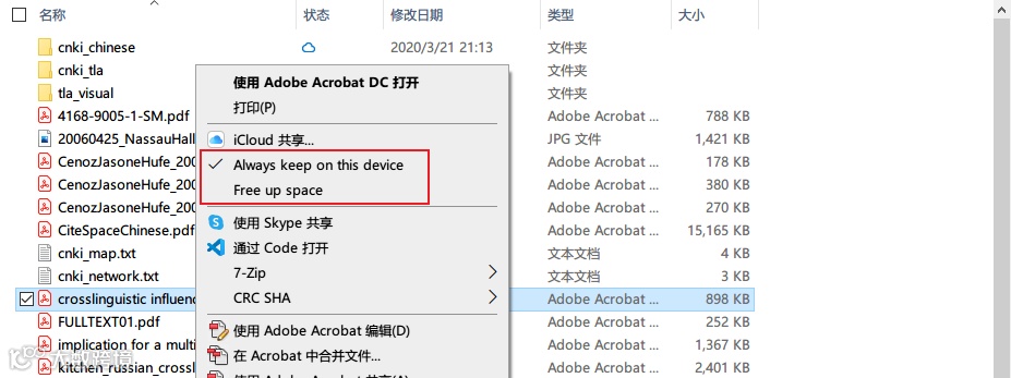 将文件拖入 iCloud 云盘目录即可自动上传,状态栏实时显示进度及本地可用性。对于需要常驻本地或释放空间的文件,右键即可选择“始终保留在此设备上”或“从设备中删除”,操作直观便捷。可在资源管理器中查看文件同步状态默认情况下,系统会按需自动下载正在使用的 iCloud 文件。若应用为支持微软 API 的 UWP 应用,还可收到下载通知提示。自动文件下载通知示例可手动控制文件本地保留或删除以优化存储