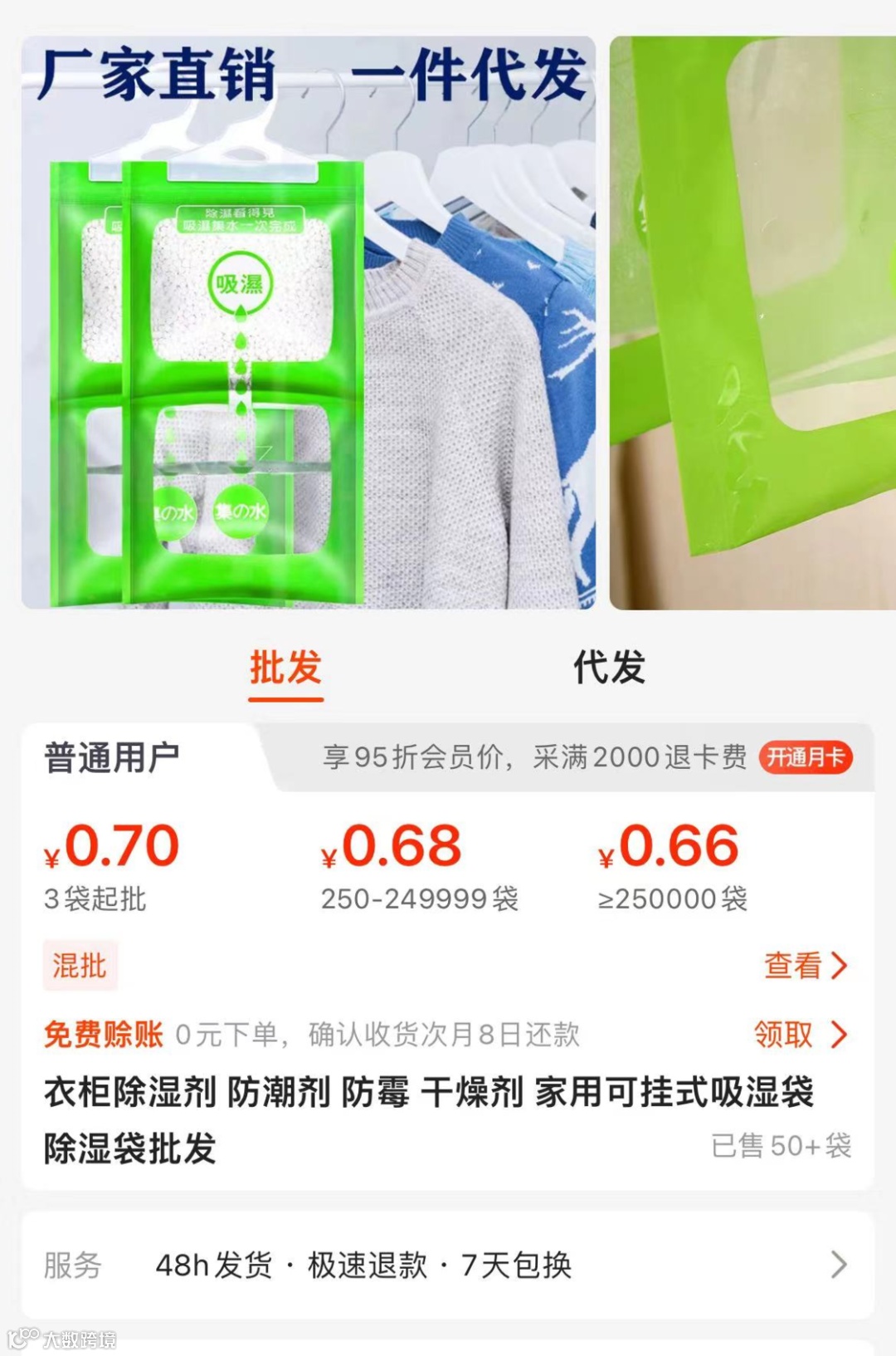 以南方常用的除湿袋为例,超市售价普遍为每包 2 至 5 元,而在 1688 批量采购可低至 0.68 元/包。虽然单次差价不大,但年均用量大,整体节省可观。类似情况还包括袜子、卫生纸、拖鞋等高频消耗品,长期积累能显著降低生活成本。