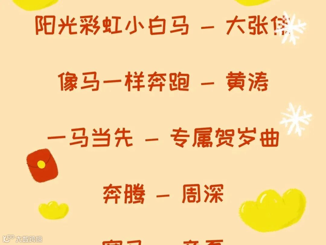 ○ 玩法:现场循环播放含“马”字的歌曲片段(5-10秒),音乐停止后参与者抢答歌名。