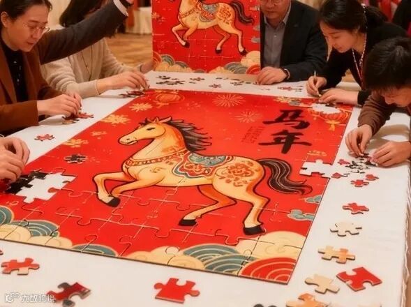 ○ 玩法:参与者依次说一句含“马”字的新年祝福(如“马到成功”“龙马精神”),重复或说不出者接受小惩罚(如学马叫3声)。