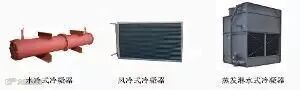 2、冷凝器制冷系统的高温高压氟里昂从压缩机出来后进入冷凝器中,向冷却介质释放出大量热量,被冷却液化。那么,冷凝器按其冷却形式可分为三大类型:水冷式、风冷式、蒸发式及淋水式。