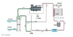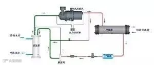 工业俗称冷冻机、制冷机、冰水机、冻水机、冷却机等,因各行各业的使用比较广泛,所以名字也就多得不计其数。其性质原理是一个多功能的机器,除去了液体蒸气通过压缩或热吸收式制冷循环。蒸汽压缩冷水机组包括四个主要组成部分的蒸汽压缩式制冷循环压缩机,蒸发器,冷凝器,部分计量装置的形式从而实现了不同的制冷剂。吸收式冷水机利用水作为制冷剂,并依靠之间的水和溴化锂溶液,以达到制冷效果很强的亲和力。冷水机的工作原理是蒸气压缩式制冷,也即是利用液态制冷剂汽化时吸热,蒸汽凝结时放热的原理进行制冷的。在制冷技术中,蒸发是指液态制冷剂达到沸腾时变成气态的过程。液态变成气态必须从外界吸收热能才能实现,因此是吸热过程,液态制冷剂蒸发汽化时的温度叫做蒸发温度,凝结是指蒸汽冷却到等于或低于饱和温度,使蒸汽转化为液态。[1]系统流程示意图
