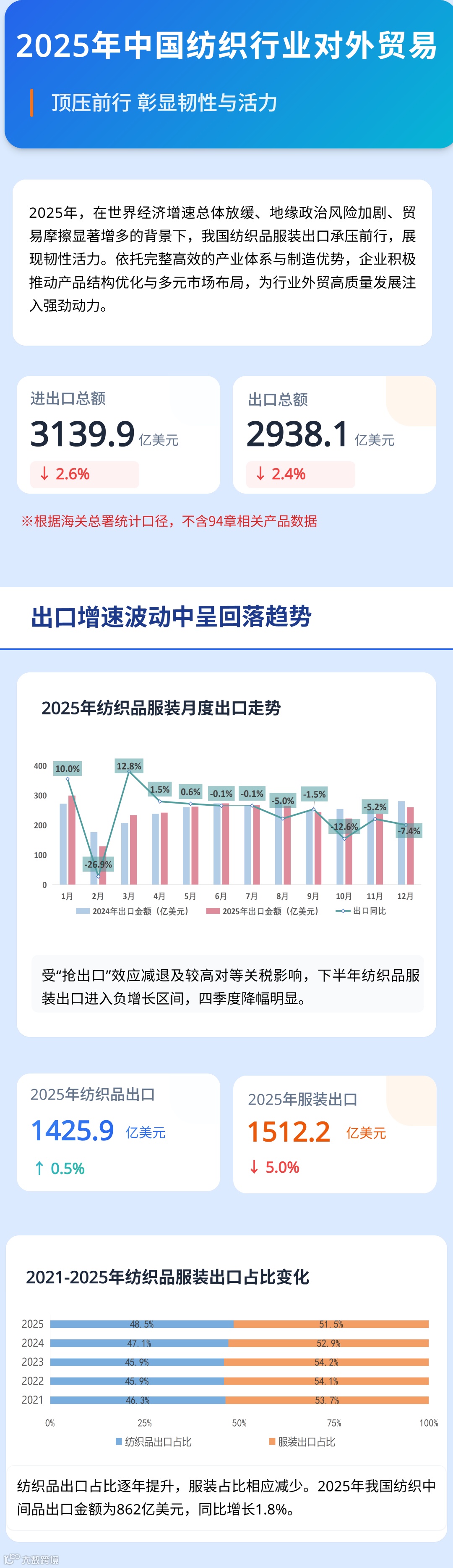 数读2025 | 盘点全年中国纺织行业对外贸易表现