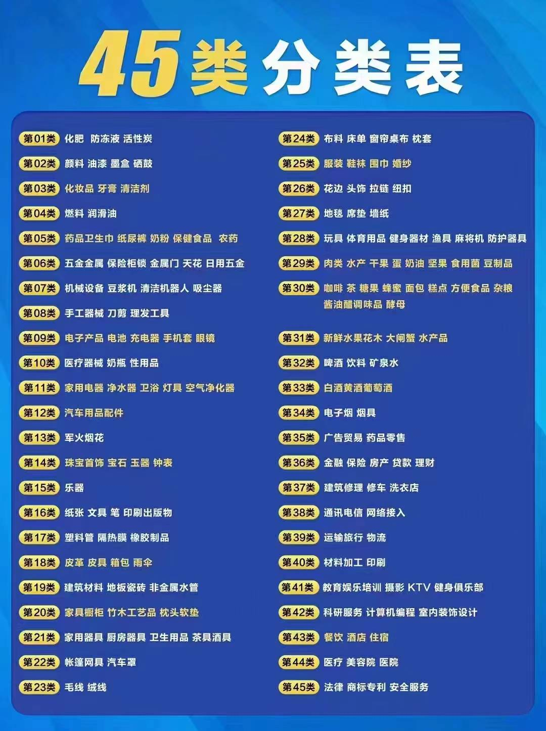 “尼斯分类”是全球通用的商标分类标准,由世界知识产权组织(WIPO)制定,用于商标注册的国际商品和服务分类系统。目前主要分为45类,其中第1-34类是商品类别(实物),第35-45类是服务类别(非实物)。在注册商标时,卖家可以结合主营产品属性以及自身需求,对照尼斯分类表进行选择注册类别,建议先确定商标的大类,再根据关键词选择小类。