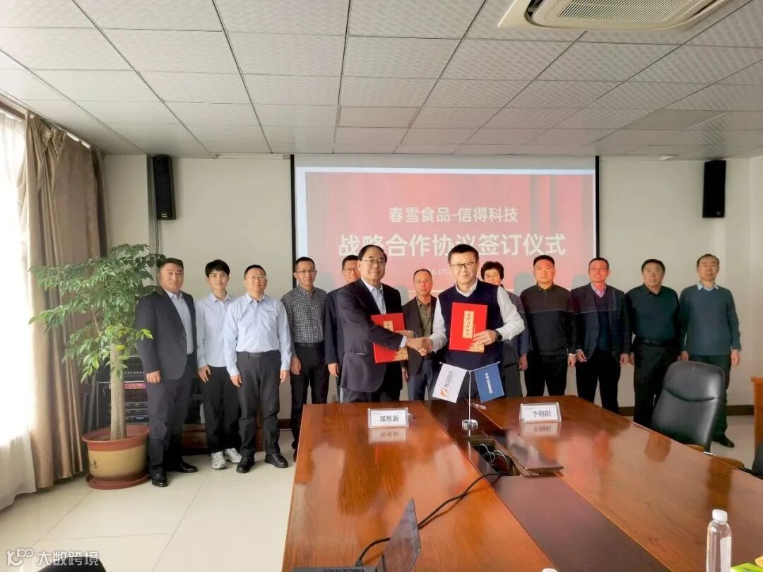 1月19日,春雪食品集团股份有限公司下设的全资子公司——莱阳春雪养殖有限公司与山东信得科技股份有限公司签署战略合作协议,春雪食品集团董事长郑维新与信得科技董事长李朝阳代表双方签约。