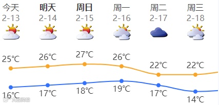 据深圳气象局消息,节前到春节假期深圳天气总体平稳,适宜出行。近期,冷空气减弱、阳光增多,天气回暖,最高气温达27℃,16日起,受冷空气影响,云量较多,气温小幅下降。