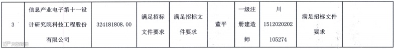 中标候选人第3名:信息产业电子第十一设计研究院科技工程股份有限公司,投标报价324181808.00元,折合单价约为:1.80元/W。