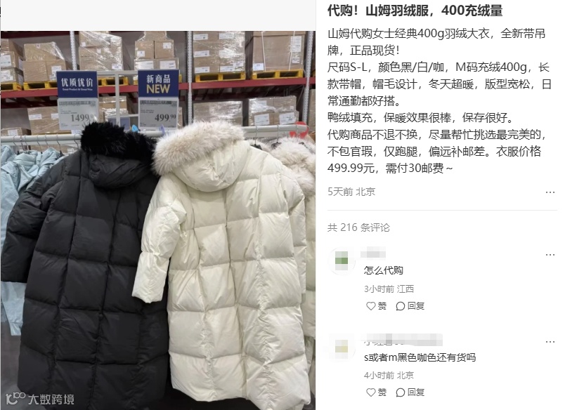 记者观察到,近日山姆超市一款标价499.9元的羽绒服在社交平台备受追捧,截至发稿时门店均已售罄,二手平台涌现加价代购需求。山姆会员张女士告诉记者,1月12日她在网上刷到相关推荐信息后第一时间想要去APP下单,但已显示无货,“我已经发送了到货提醒,等有货了第一时间入手一件。确实看着挺实惠的。”