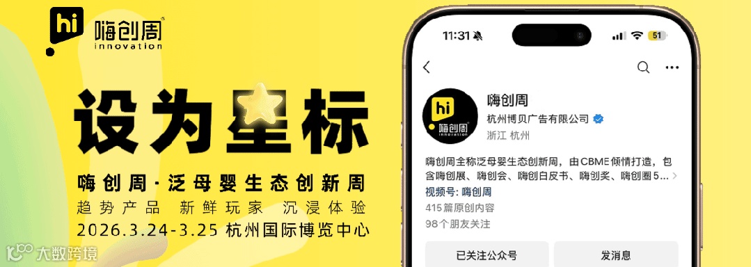 2026年3月24-25日,第五届嗨创周·泛母婴生态创新周作为泛母婴行业开年首展,将在杭州国际博览中心举行。汇聚1,000+趋势品牌,集结25,000+新鲜玩家,开设100+亮点活动,打造沉浸体验,助力实现生意增长。