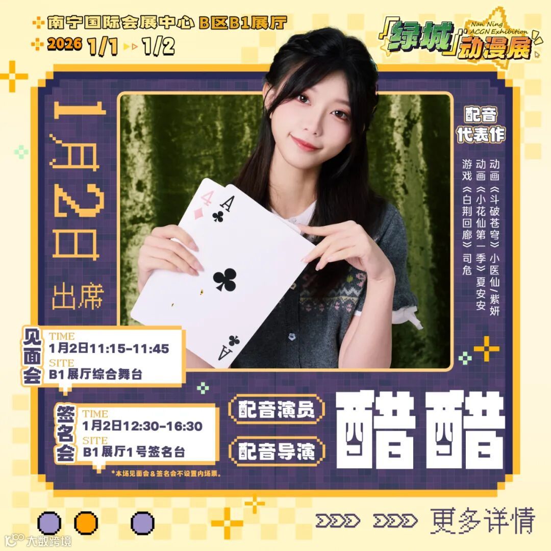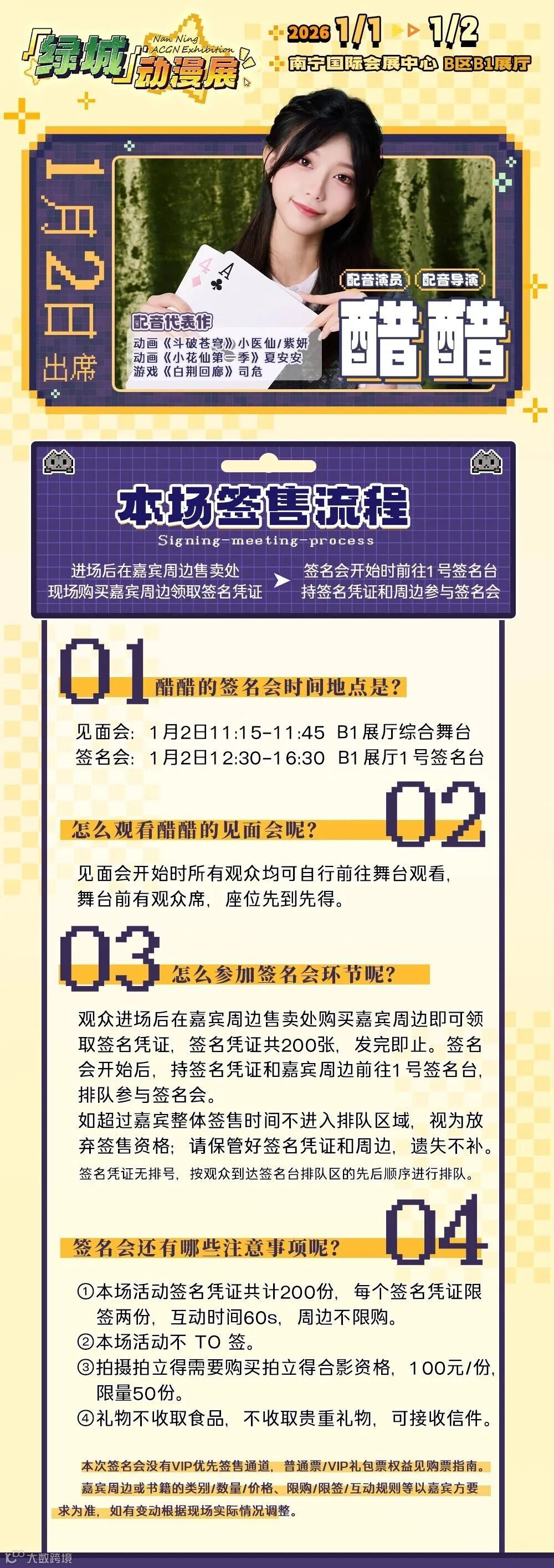由于行程原因,凌宇沫老师本次绿城动漫展的出席日期调整为【1月2日】,其他嘉宾老师无变动。