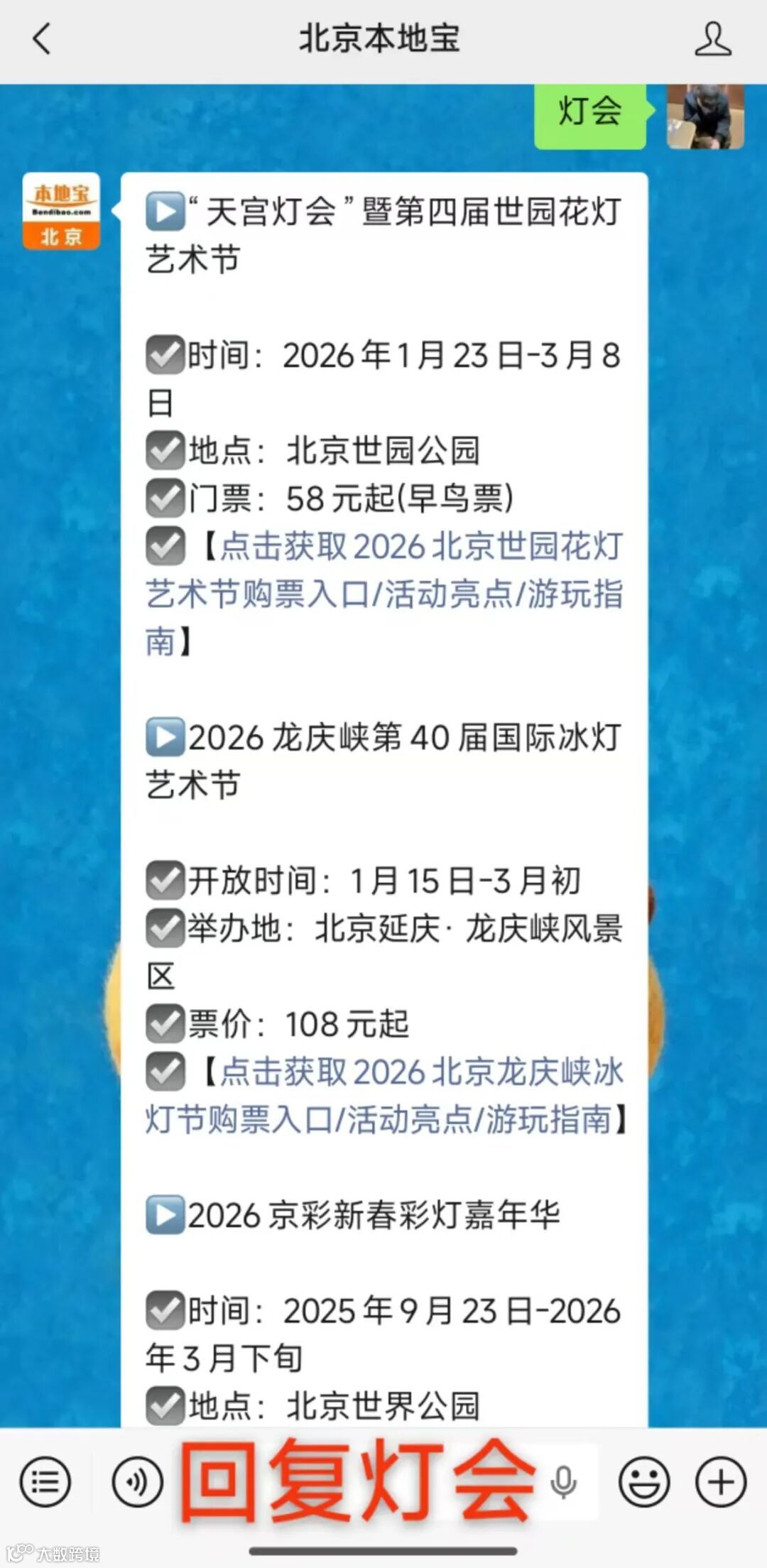 微信对话框回复【灯会】