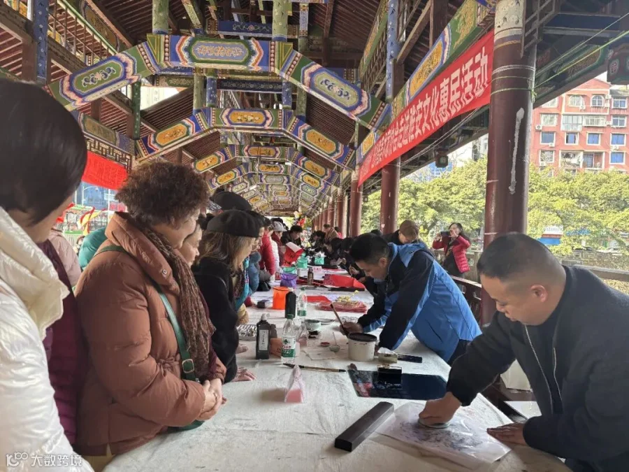 活动现场,艺术家们以笔墨为媒介、以廊桥为画卷,挥毫点染,佳作频现。笔锋流转之间,一幅幅蕴含文化底蕴与雅安地域特色的春联、一个个遒劲有力的“福”字跃然纸上;挥毫挥洒之中,一件件融入大熊猫文化、茶香山韵等自然风光元素的国画、版画等美术作品熠熠生辉,艺术性与观赏性兼备。