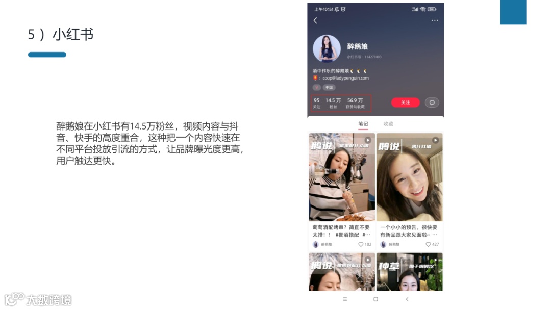醉鹅娘的推广覆盖微信、抖音、快手、知乎、小红书等多个主流平台,在公域引流与私域转化方面表现出色。