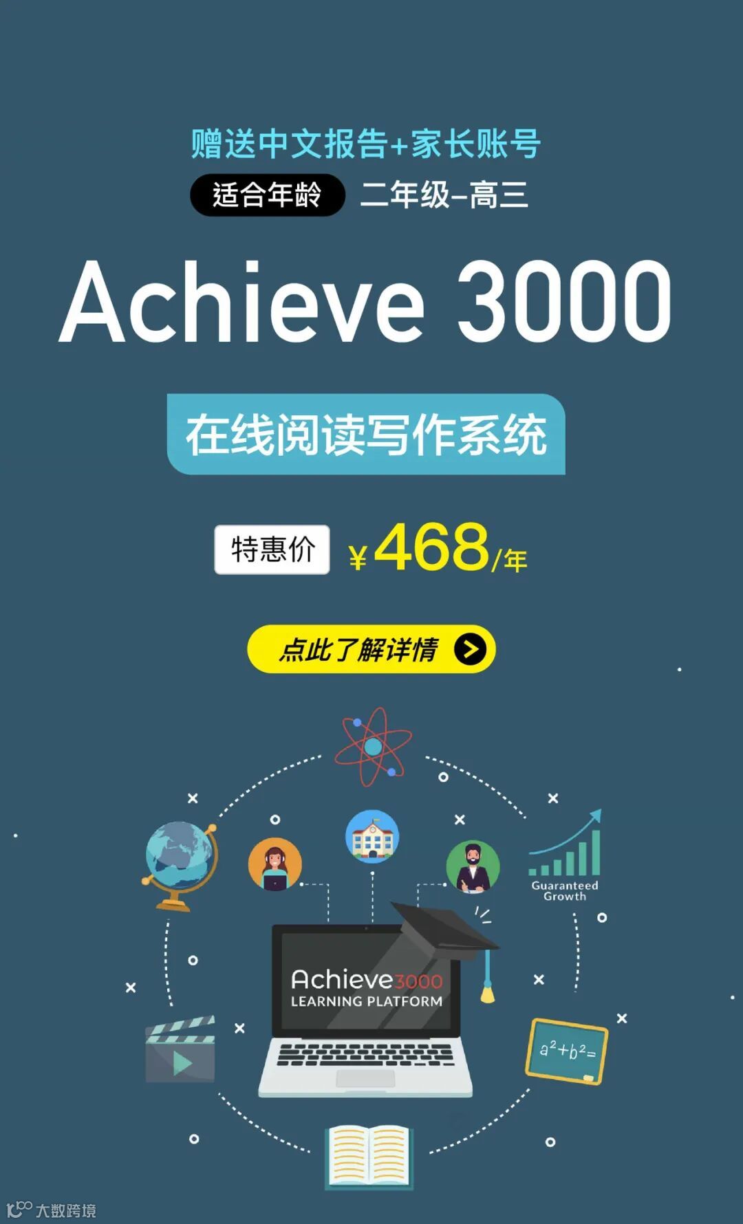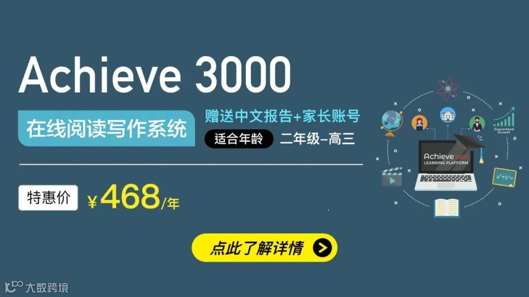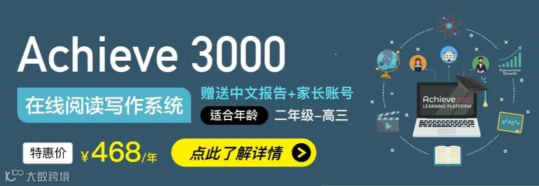 本次阅读第一为家长们找到了Achieve3000在线阅读写作系统特别优惠:468元/年,并赠送中文报告+家长账号!