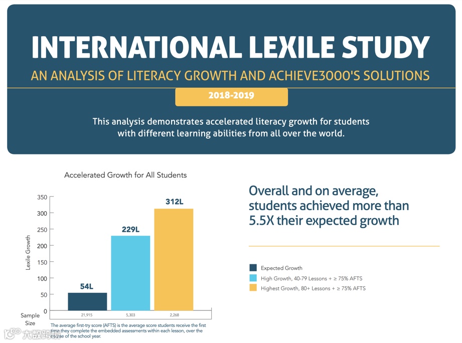 曾有数据研究结果显示,使用Achieve3000的学生,平均蓝思值增长是同龄人的3~5倍!