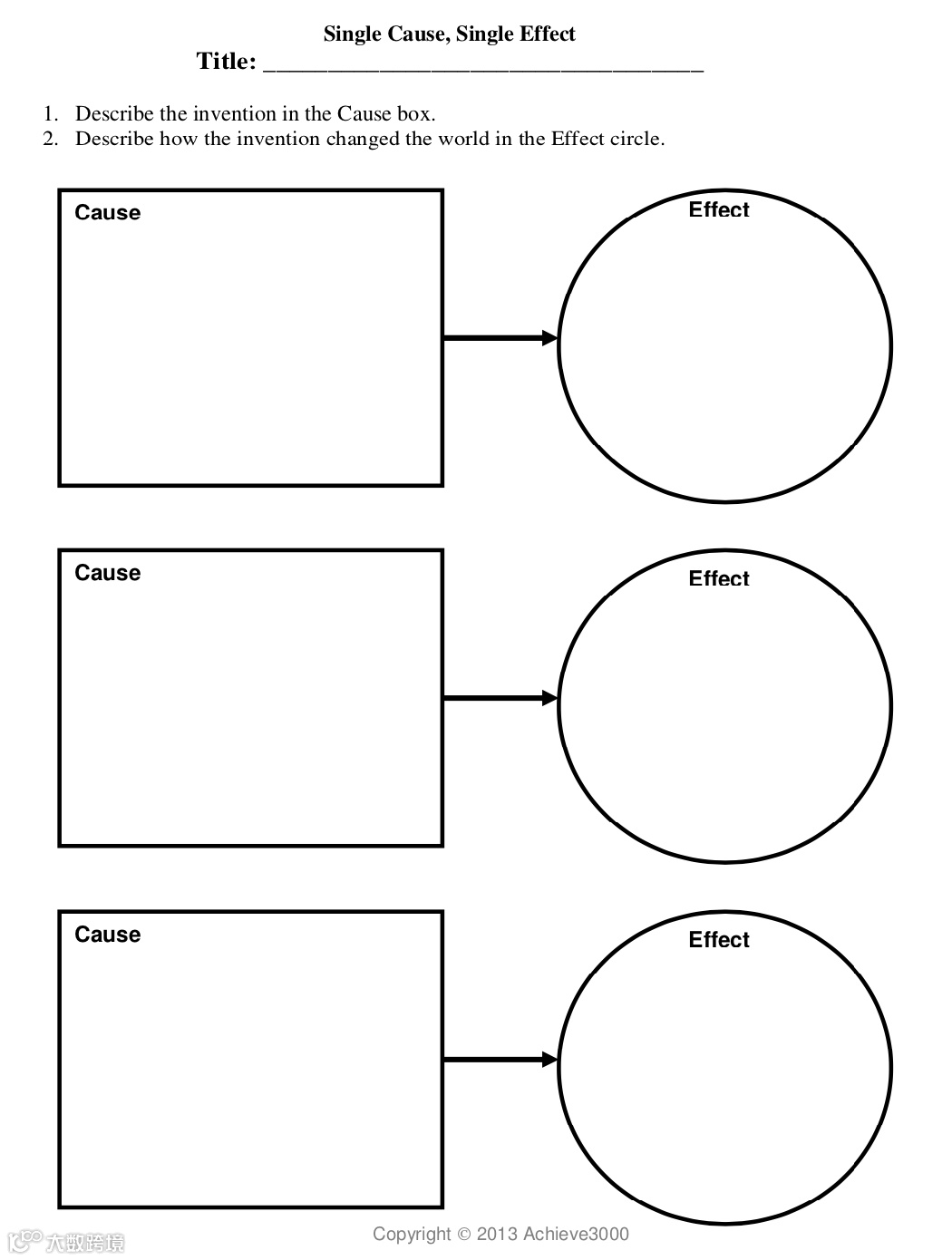 Achieve课程系统还提供了很多Graphic Organizer的工具,供学生来整理思路。下图的因果关系和对比关系梳理图只是众多写作工具图表中的示例。