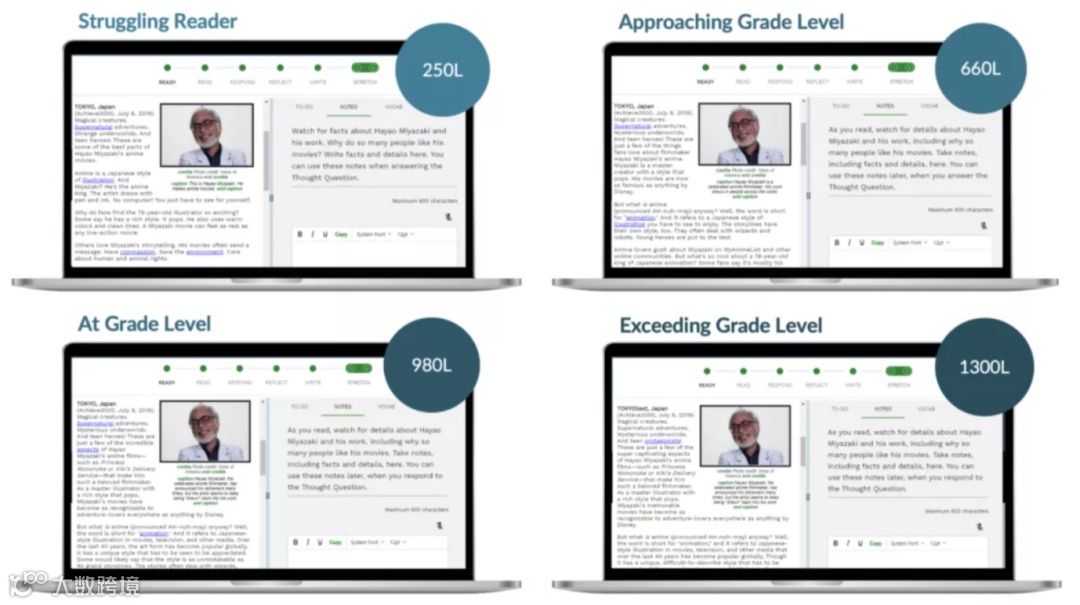 Achieve3000核心功能就是建立在蓝思分级的基础上。
