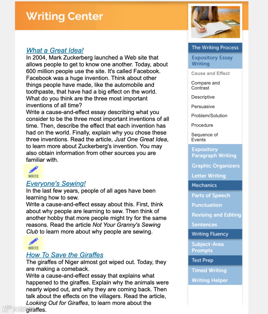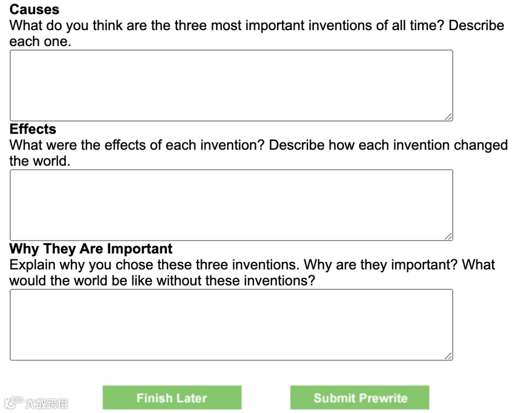 事实上,Achieve3000的问答题写作形式很丰富,有复述故事、比较与对比等。