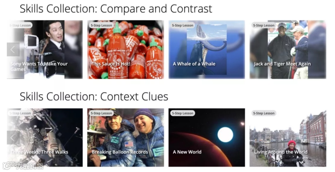 新版系统还贴心的提供了Skills Collection,即按阅读技能分类的文章,帮助学生进行薄弱项的专项提高。