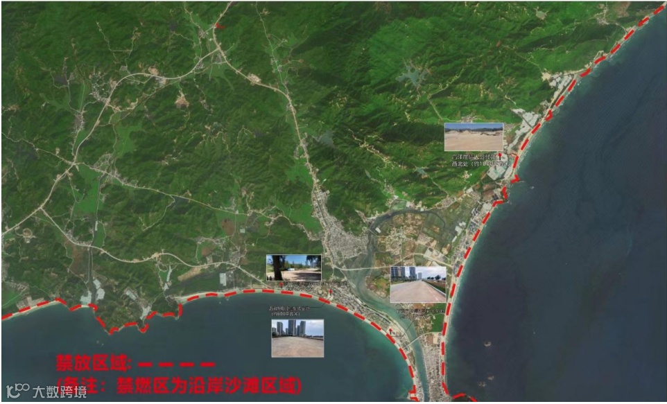 平海镇限时可燃区域:万科9号门停车场空地(约600平方米),万科双月湾四期对出空地(约600平方米)、南门海高登喜岸西北斜对出空旷地处(约500平方米)、高洋尾情人岛驿站西北处(约1000平方米)沙滩区域为限时可燃放区