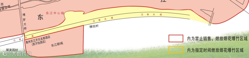调整后惠城区禁止燃放烟花爆竹的范围如下: