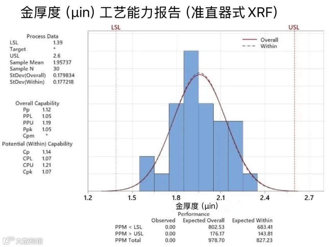 然而,低能力的 XRF 系统使过程能力指数 Cpk 从 5.17 降至 1.07。
