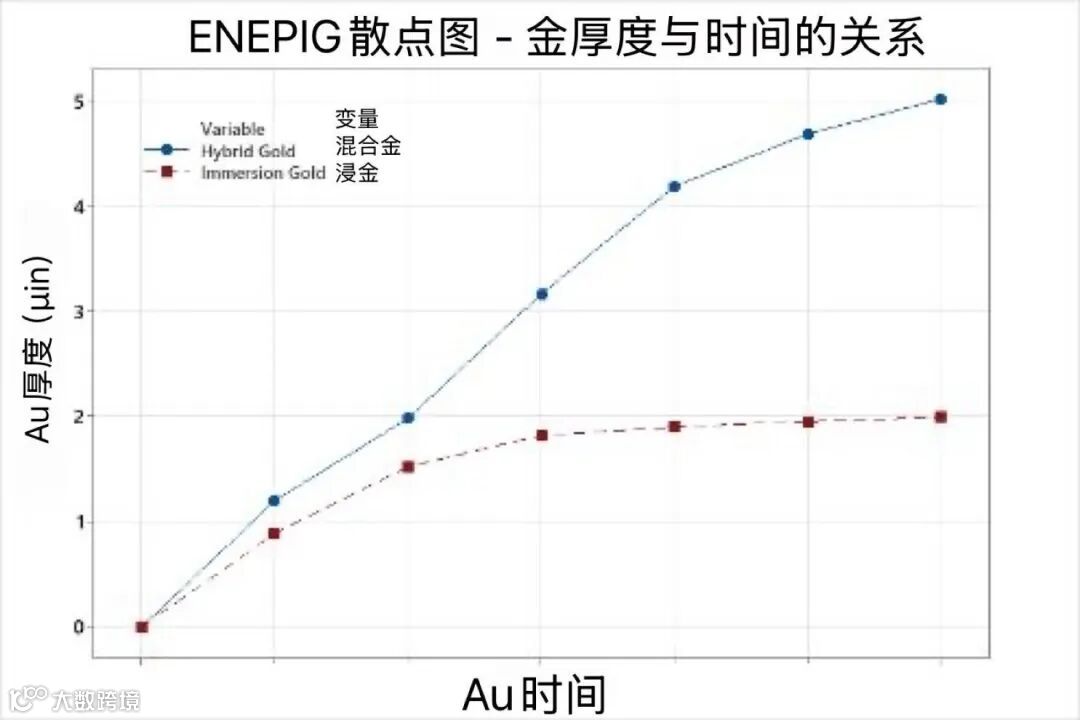 保持 ENEPIG 金层厚度比 ENIG 涉及更多影响因素,因此需要更多的统计过程控制要求,以维持更严格的 IPC-4556 ENEPIG 厚度公差。