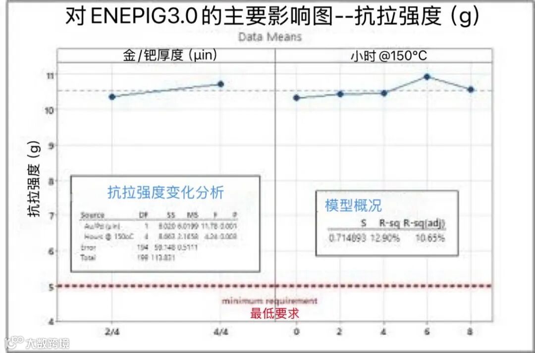 图8b:ENEPIG金线键合数据性能的统计分析,金厚度分别为2µin和4µin