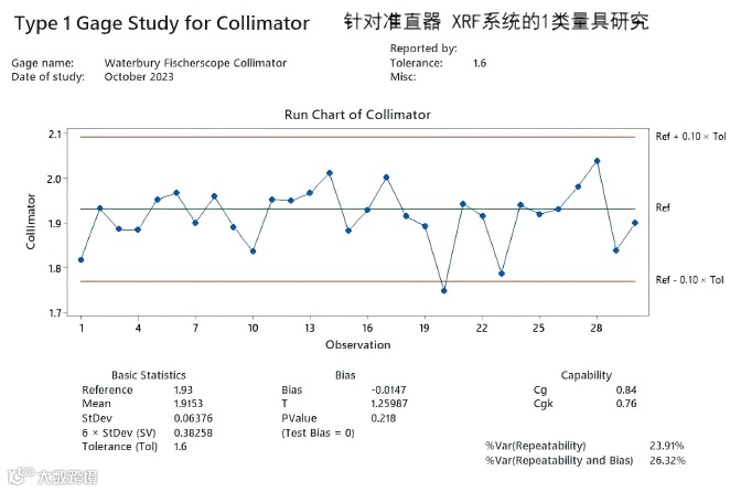准直器式 XRF 系统测得的 Cg/Cgk 值分别为 0.84/0.76,触发了缓冲安全区,使可用公差缩减至标准的 76%。