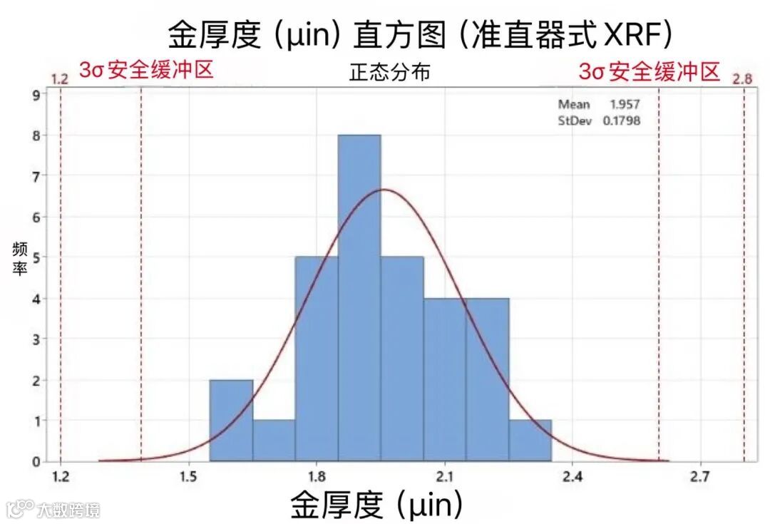 根据 IPC-4552B 的规定,需通过一级量具研究评估XRF 测量系统的可重复性。对于低能力系统(Cg ≤ 1.33),必须要么增加测量次数(但在生产中往往不切实际),要么采用安全缓冲区进一步缩小公差范围。