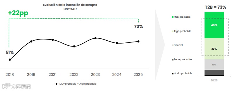 从长期趋势看,Hot Sale 的购买意向在过去七届中累计上升 22 个百分点,反映出消费者对大促模式的深度依赖。这种趋势背后是墨西哥电商市场的结构性变化:互联网普及率已达 86.51%,移动购物占比超 80%,年轻群体(35 岁以下占比近 60%)成为消费主力。平台通过精准的用户分层运营(如针对千禧一代的社交媒体裂变、针对中老年用户的线下广告渗透),成功将大促转化为全民消费狂欢。