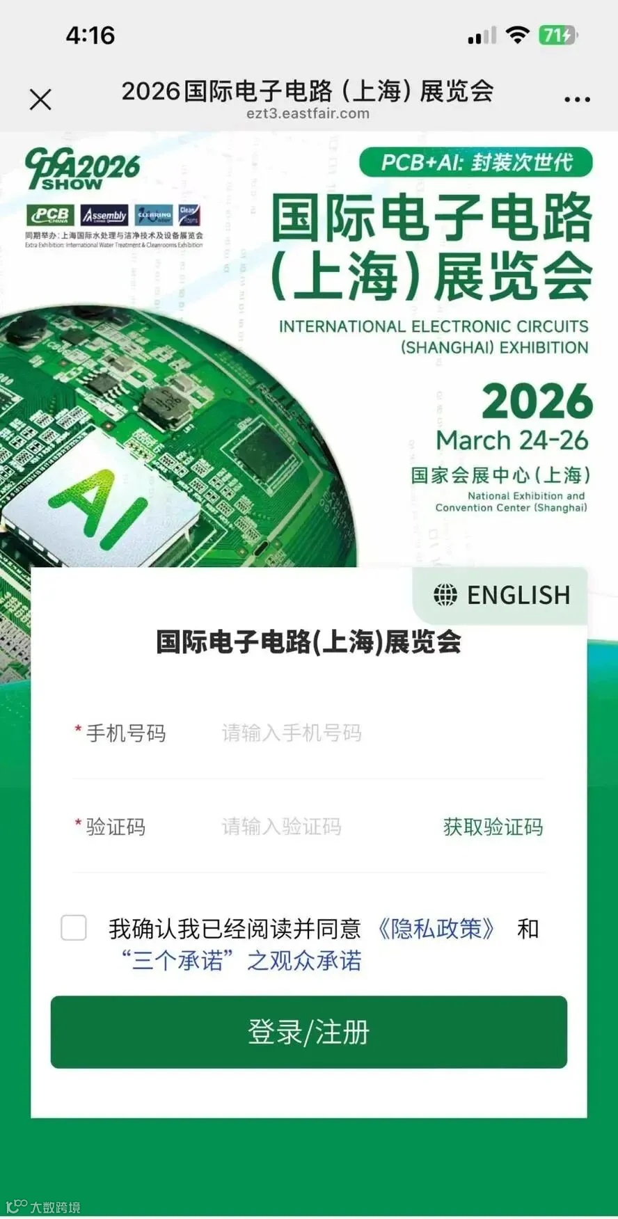 扫码进入注册页面,填写手机号与验证码