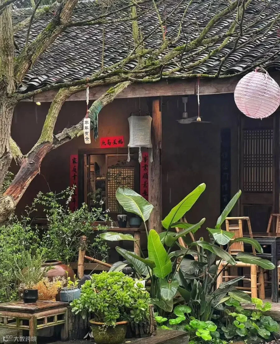 古原茶室,从来都是“寻一处幽静,觅一处清欢”的绝佳之选。雨天来访,更有别样意境——雨打芭蕉闲听雨,一杯清茶伴流年。细雨淅沥,落在芭蕉叶上,溅起细碎的声响,雨水顺着青瓦滴落,晕开浅浅涟漪。
