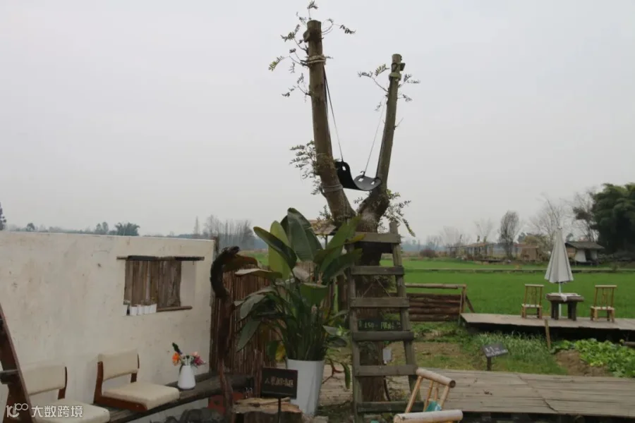 轻轻探身而入,眼睛瞬间亮了——深夜刷到的那架秋千,正稳稳立在「从简茶咖」的院子里,随微风微微晃动。