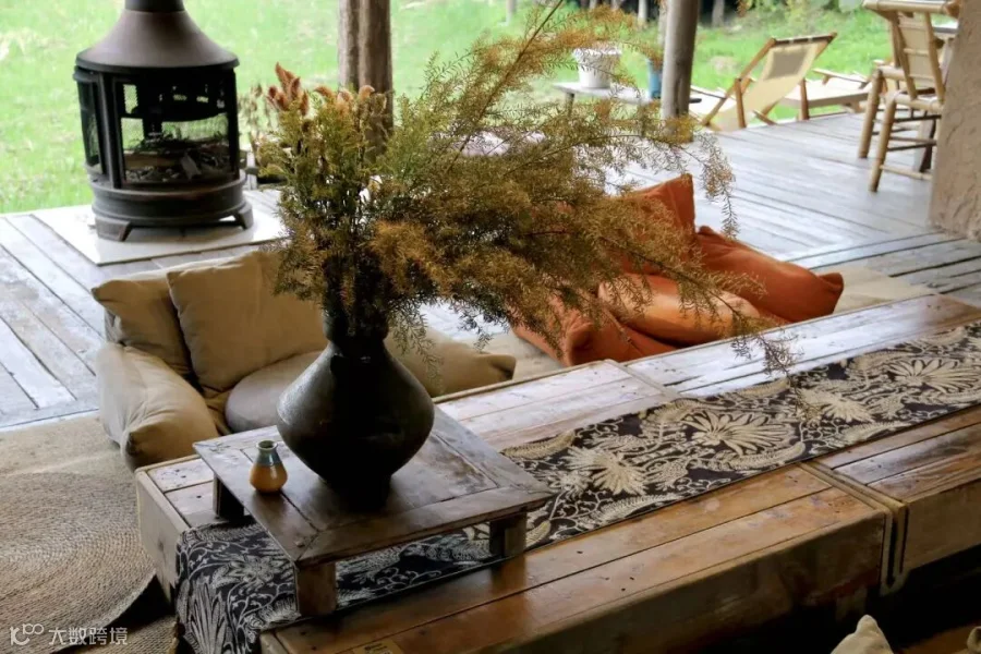 院子里,大小不一的树屋、看台高低错落,散落于枝叶之间,搭成一个个天然的私密角落。顺着木梯爬上去,窝进柔软的座椅里,仿佛拥有了专属的树梢秘密基地,隔绝了尘世所有喧嚣。