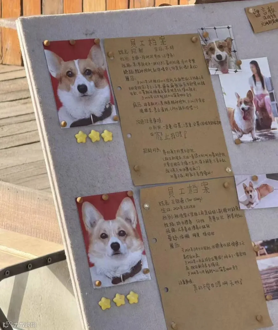 院内两位“持证上岗”的毛孩子员工,正懒洋洋地晒着太阳,静静等候着每一位前来的朋友。吉他做的门铃响起的瞬间,将它们的热情拉到了顶点。