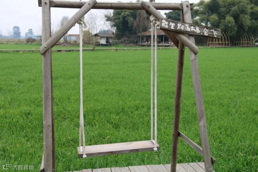 爬上去随意一荡,视野便被铺天盖地的绿意、澄澈蓝天与无边麦田填满,风拂过耳畔,像是把自由的灵魂,都攥在了手心。