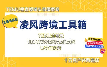 凌风跨境工具箱是一个服务TEMU/SHEIN/TK等平台用户的一站式工具,拥有批量上架、批量合规、核价等八十余个功能,凌风云链科技有限公司是一家专注于为跨境电商行业提供综合服务的科技企业,致力于打造覆盖资讯、工具与服务的跨境电商软件生态,助力全球跨境卖家提升运营效率、降低成本,在国际市场中增强竞争力