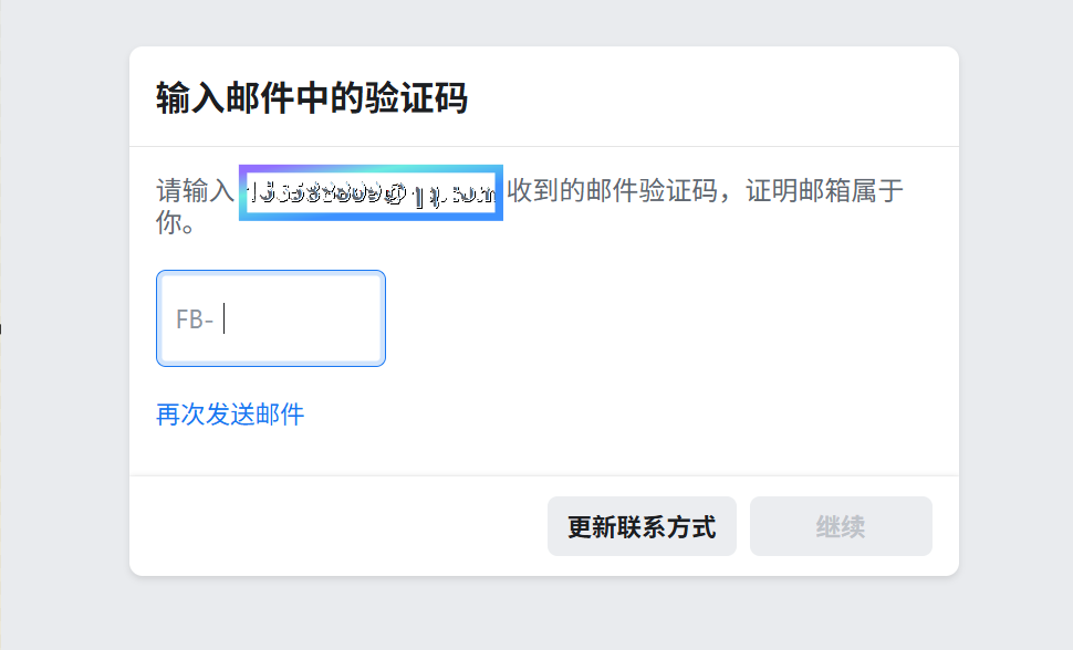 - Facebook会向提供的邮箱或手机号发送验证码,查收并输入验证码完成验证。