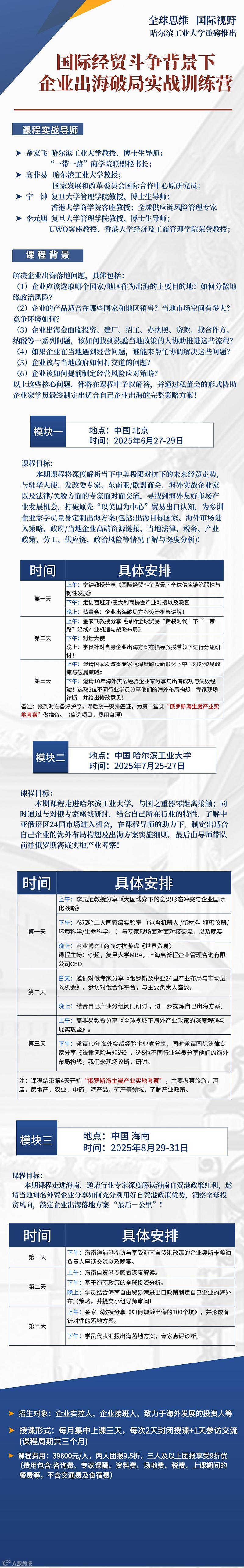 哈尔滨工业大学重磅推出“企业出海赋能(第四期)课程”!