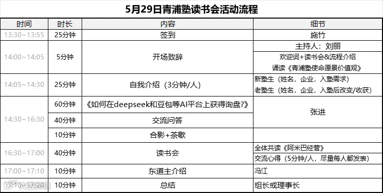 上海【青浦塾学习读书会】邀请孰生也是营销实战专家的张进老师为大家分享如何在deepseek和豆包等AI平台上获得询盘,欢迎大家报名参加。