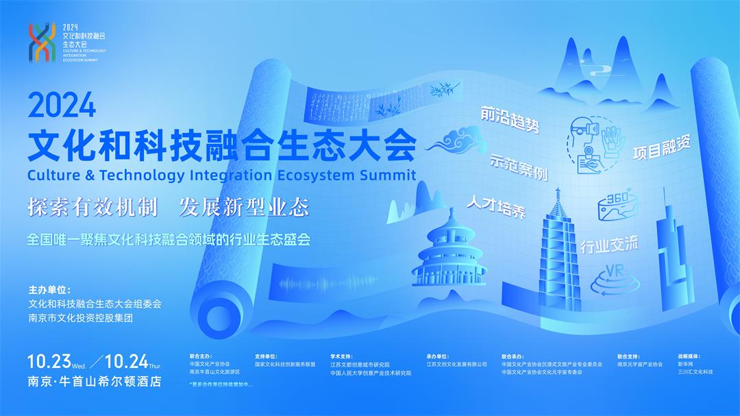 为贯彻落实党的二十届三中全会关于“探索文化和科技融合的有效机制,加快发展新型文化业态”等部署,由文化和科技融合生态大会组委会、南京市文化投资控股集团主办的2024文化和科技融合生态大会将于10月23日—24日在南京盛大开幕。