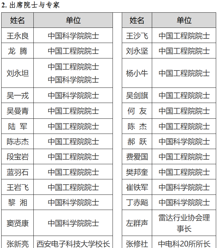 中国航天科技集团第五院西安分院、中国航天科工二院23所、中国船舶集团第七二四所、中科院空天信息创新研究院、陕西电子信息集团、西安电子工程研究所、华为技术有限公司、北京行易道科技公司、零八一电子集团、中国雷达行业协会资深专家委员会、中国雷达行业协会海用电子分会、中国雷达行业协会船用导航雷达分会、中国雷达行业协会航空电子分会、中国雷达行业协会电子对抗分会、中国雷达行业协会汽车电子分会、《雷达学报》、《现代雷达》、《中国雷达》