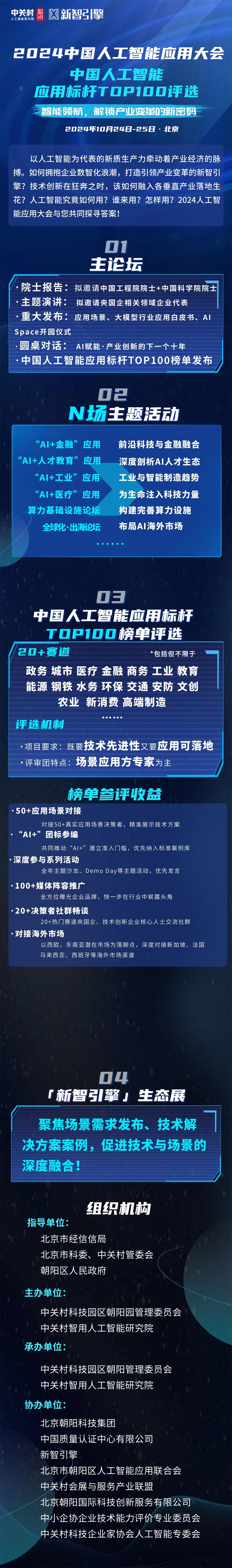 2024中国人工智能应用大会丨中国人工智能应用标杆TOP100“新智榜单”