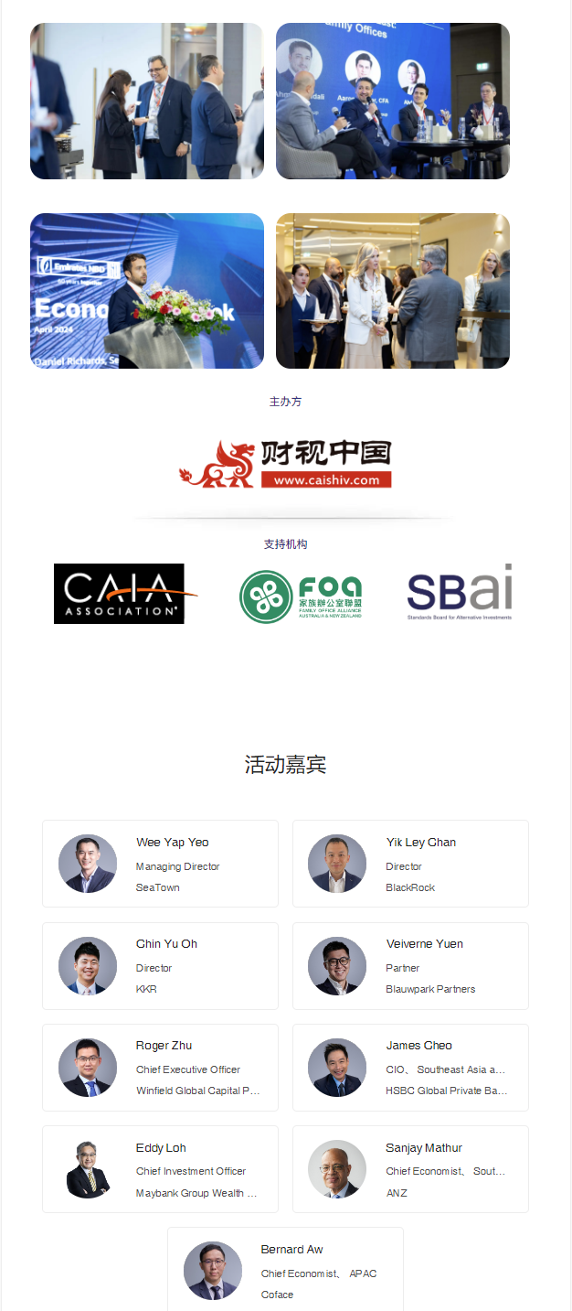 本次活动主题为“多元投资与财富管理”,聚焦多资产策略和东南亚财富管理行业,设立财富管理主论坛,股票、固定收益与另类投资分论坛。同时活动特别邀请到了来自贝莱德、KKR以及淡马锡旗下狮诚控股国际的东南亚私募信贷业务负责人,为我们带来东南亚私募信贷的最新动态和未来洞见。