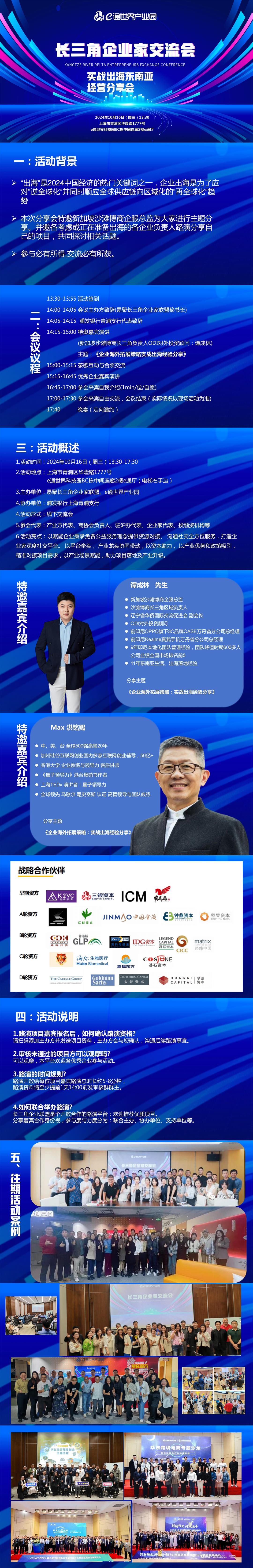 本次分享会特邀新加坡沙滩博商企服总监和TED量子演讲老师洪铭赐为大家进行主题分享。并邀各考虑或正在准备出海的各企业负责人路演分享自己的项目,共同探讨相关话题。