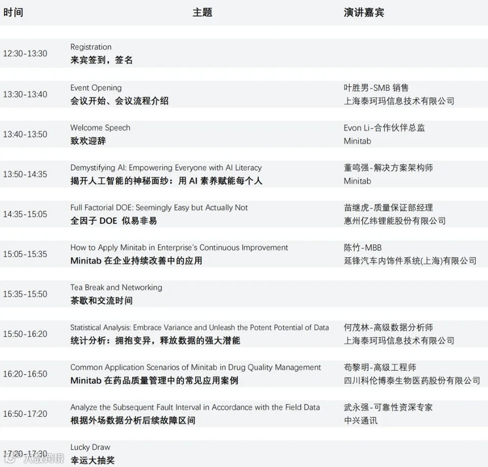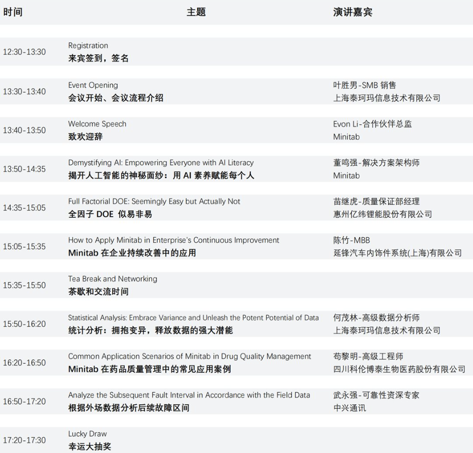 无论是优化生产流程,降低次品率,还是提升客户满意度,Minitab 都能发挥关键作用。如果你是企业管理者、质量专业人士或是对数据分析充满热情的爱好者,Minitab 峰会都将是你不容错过的盛会。让我们携手共进,探索卓越质量的无限可能!