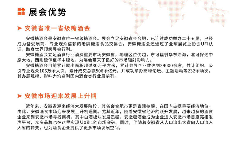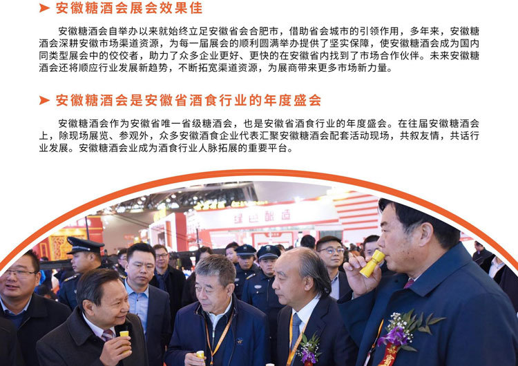 中国(安徽)国际糖酒食品交易会(简称安徽糖酒会)是中国酒食行业举办历史较早的B2B盛会之一。